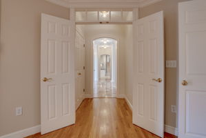 Step through the grand two-story foyer, where a curved staircase and custom-designed marble flooring set the tone for the craftsmanship that defines this home. French doors open into a richly appointed home office, featuring custom birch paneling, a gas fireplace, and elegant built-ins—ideal for today’s work-from-home lifestyle.